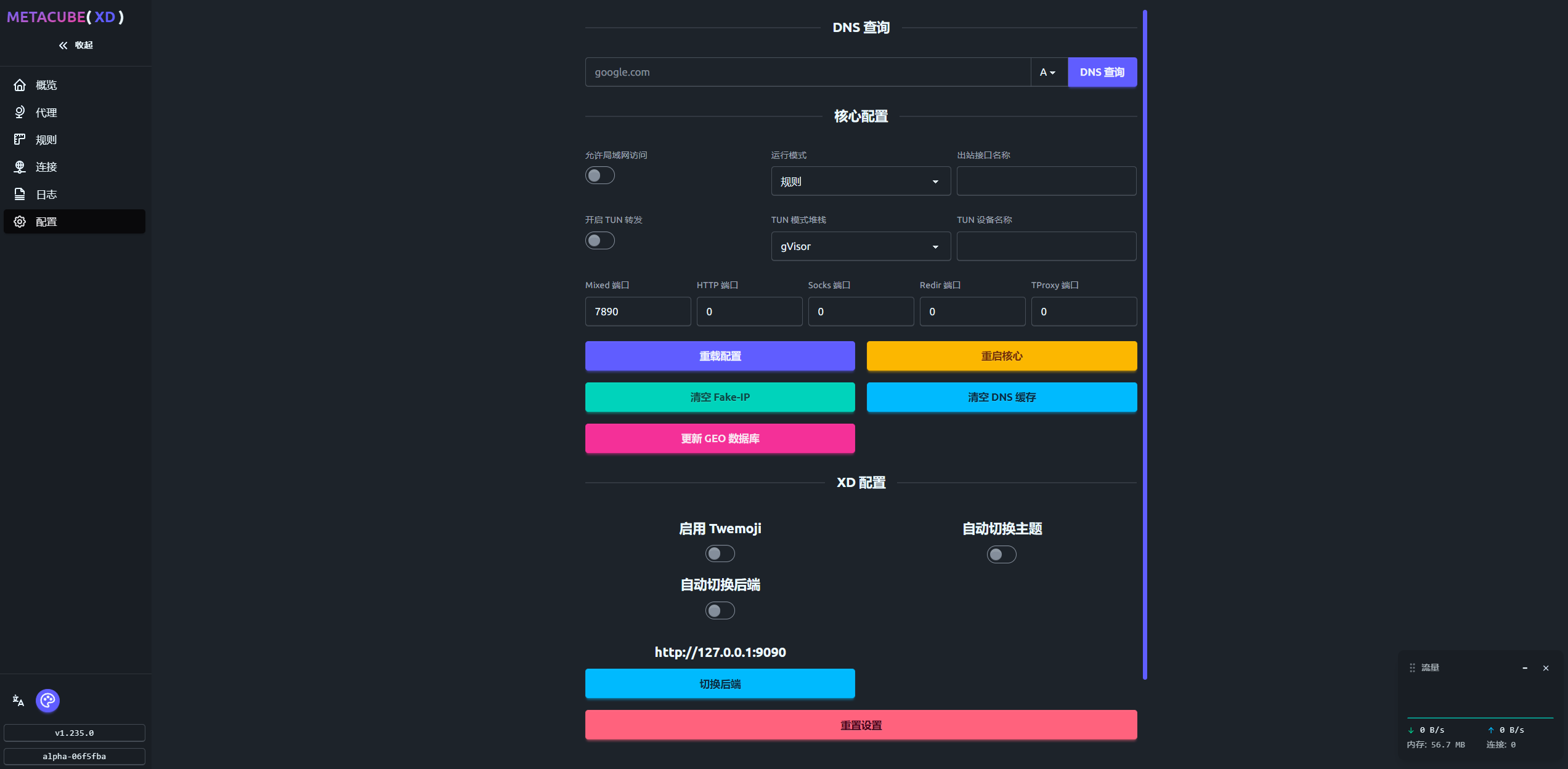• 管理面板默认绑定 127.0.0.1:9090