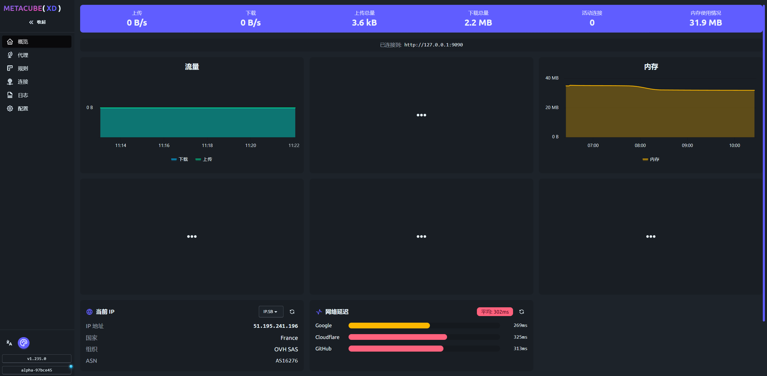 • 管理面板默认绑定 127.0.0.1:9090